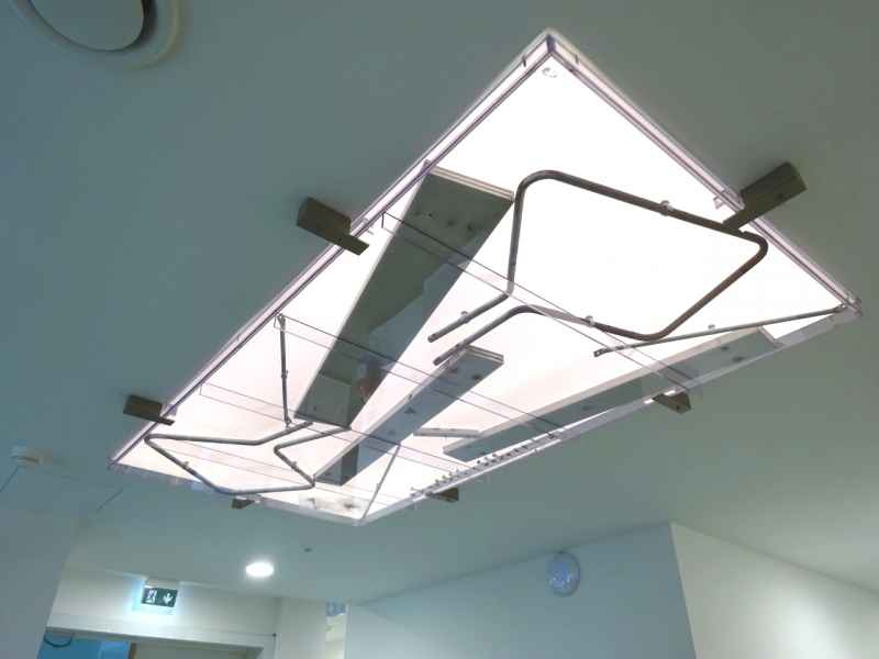 Hublot d'éclairage avec intégration des pièces d'une banque historique, pour CAW-Vilvoorde, par délégation de l'artiste Marc Godts